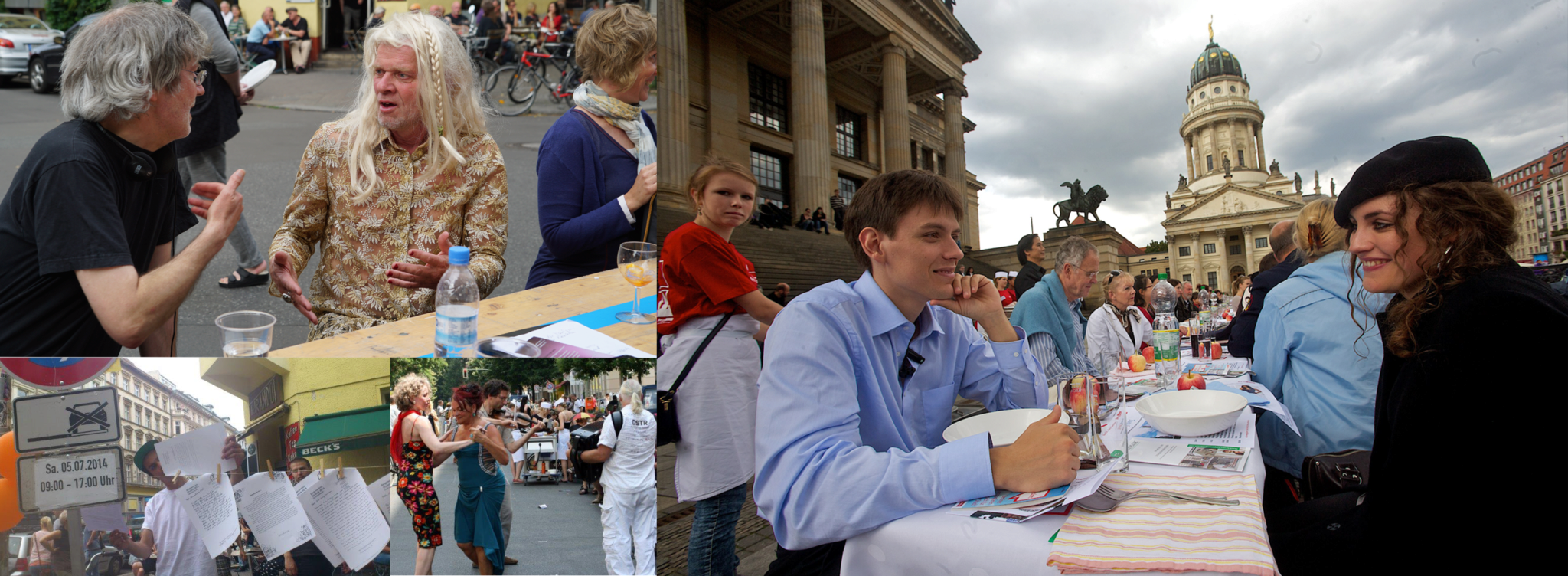 Der Tagesspiegel berichtet über die erste Lange Tafel am Gendarmenmarkt: "Die Touristen guckten verblüfft."Für einen lebendigen Dialog der Generationen ein großes inszeniertes Spaghettiessen an der längsten Spaghettitafel Berlins."