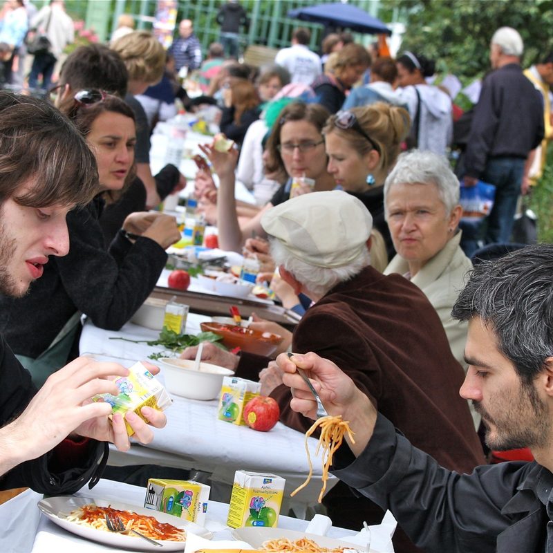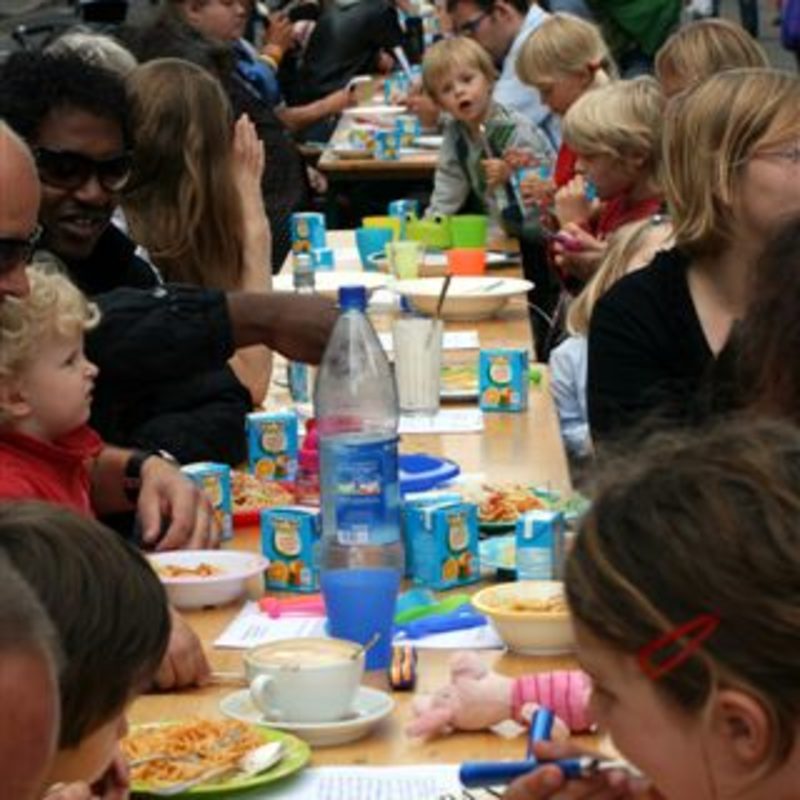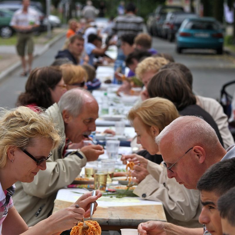 Hier finden Sie die Mitteilungen zum Großen Spaghettiessen und der Pressekonferenz in der Heidelberger Straße. Der zweite Akt der Langen Tafel wird am 11. Juli stattfinden.