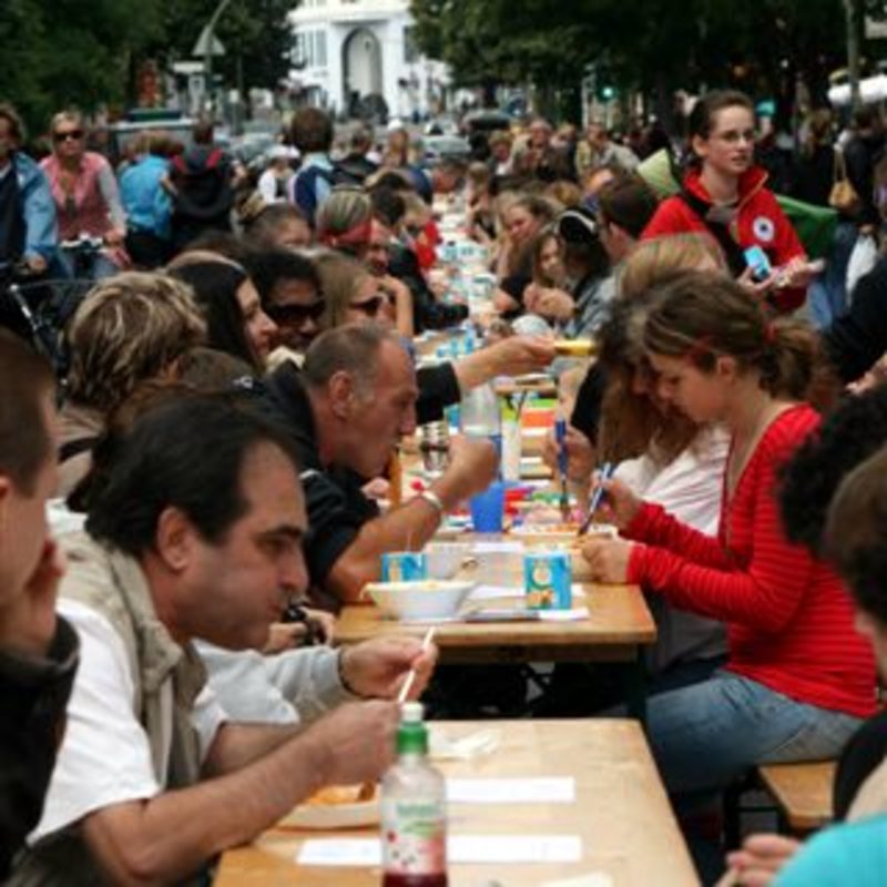 "Alle guten Dinge sind drei, in diesem Jahr findet die Inszenierung der "Langen Tafel" zum 3. Mal statt, zeitgleich in 3 verschiedenen Kiezen." Mehr ehrfahren